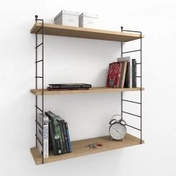 Red Living Étagère murale Papasan – Métal – Imitation chêne / Noir