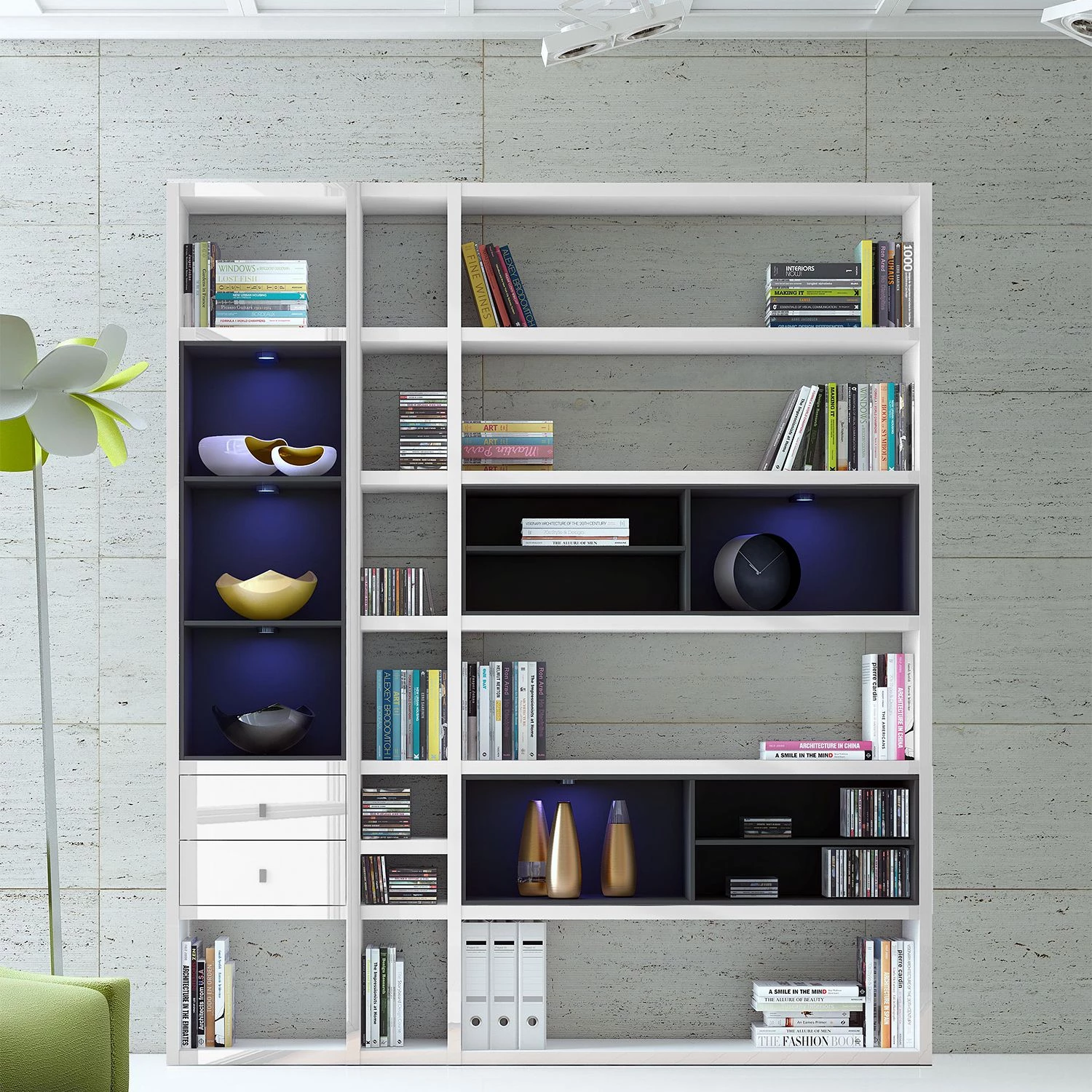 - Contenu de la livraison : mur d’étagères sans décoration
