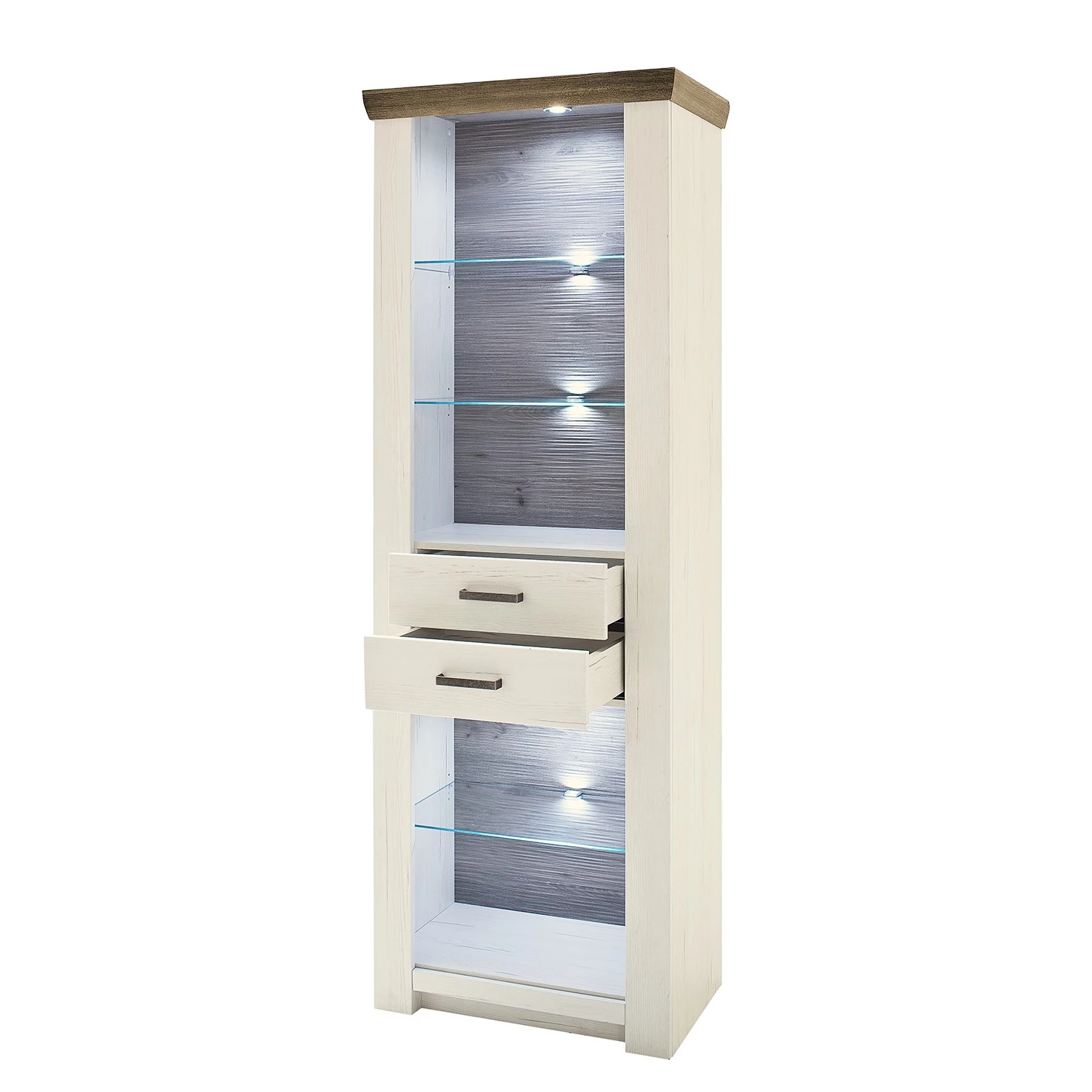 - Plateau supérieur et Panneau arrière des compartiments : imitation chêne Nelson