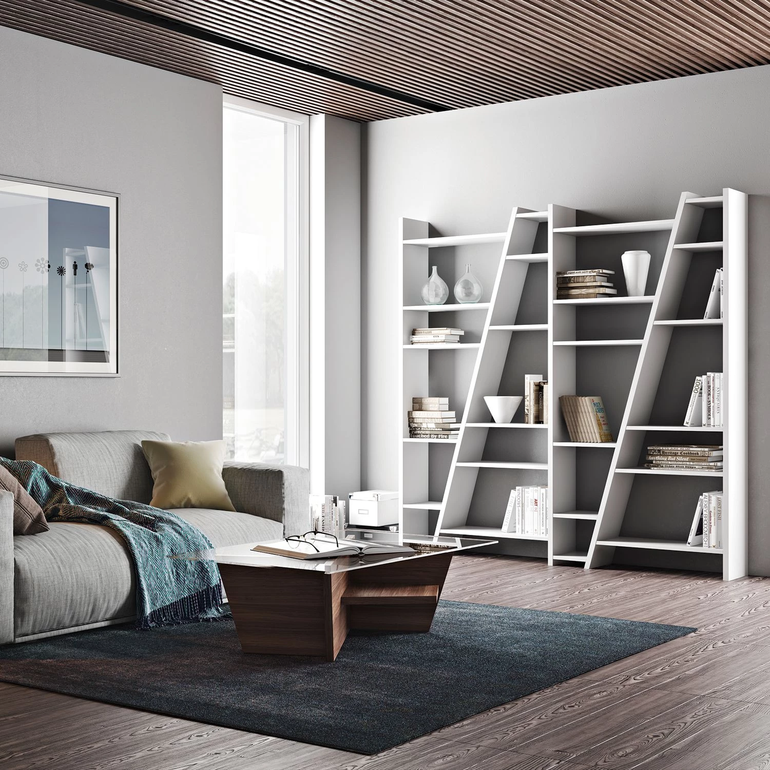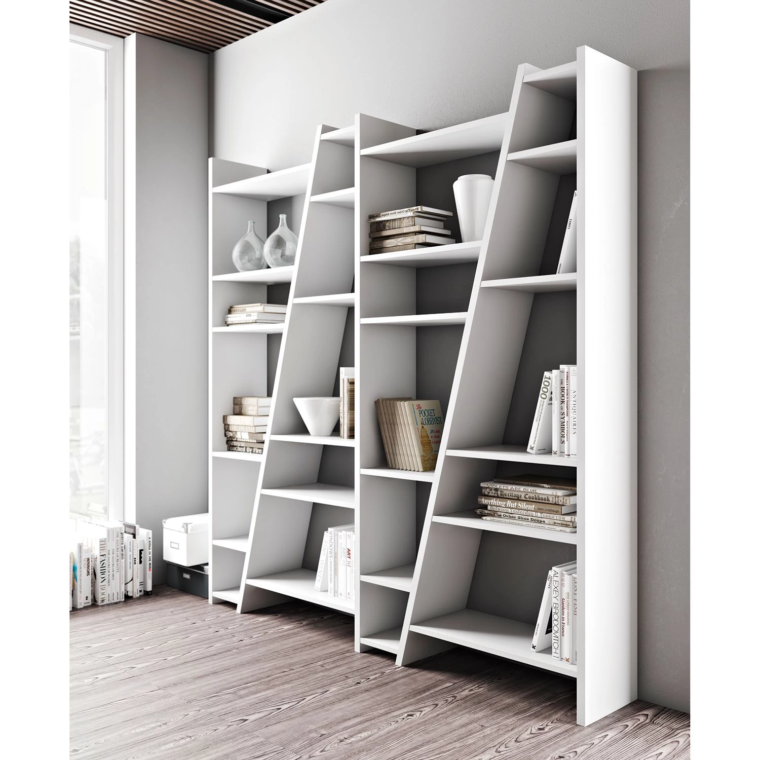 - 4 séries d’étagéres avec chacune 6 tablettes de tailles différentes
